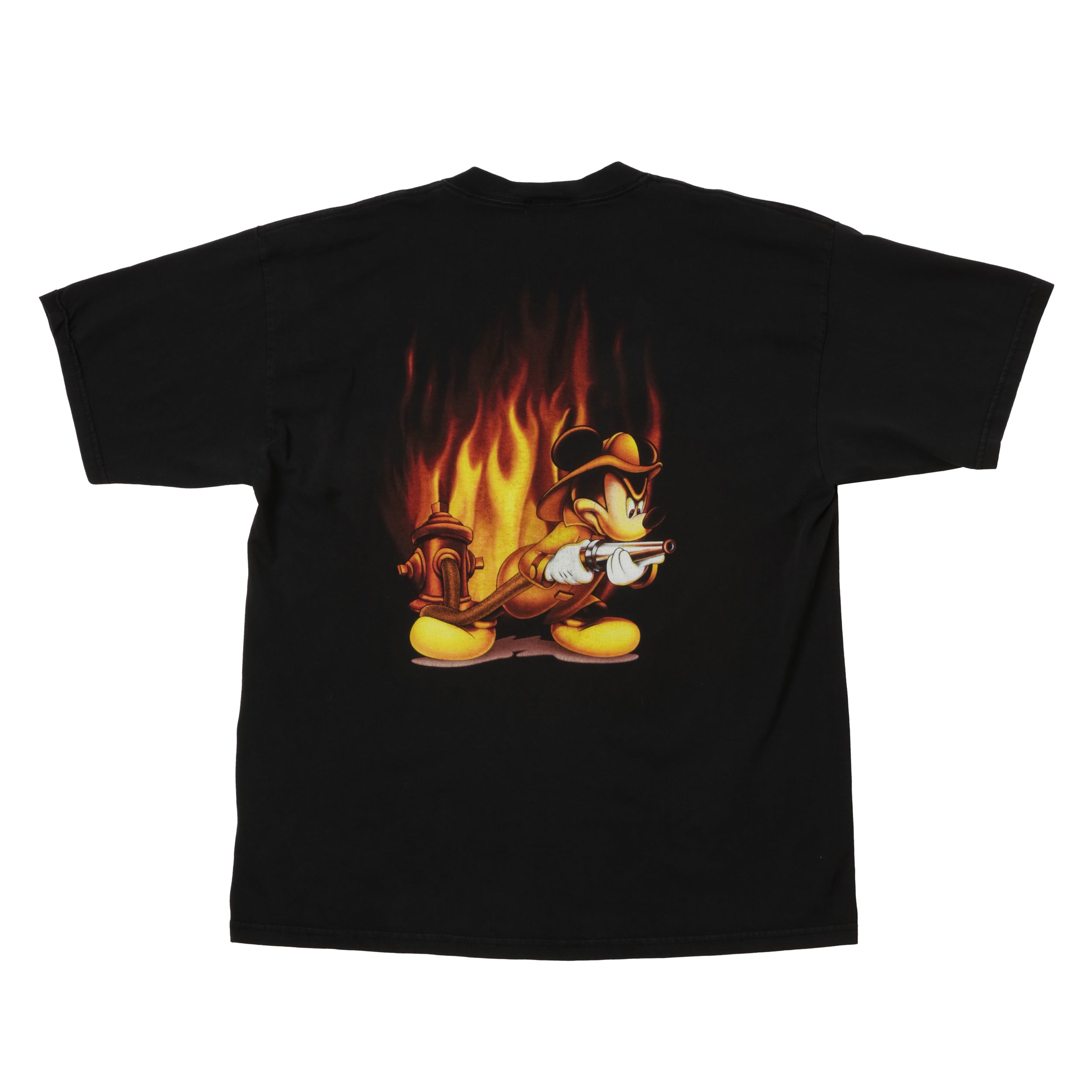 フロリダ州にある**ウォルト・ディズニー・ワールド「マジック・キングダム」の消防部門(Fire Department)**で実際に使用・販売されていた、ファイヤーファイター・ミッキーのTシャツ。