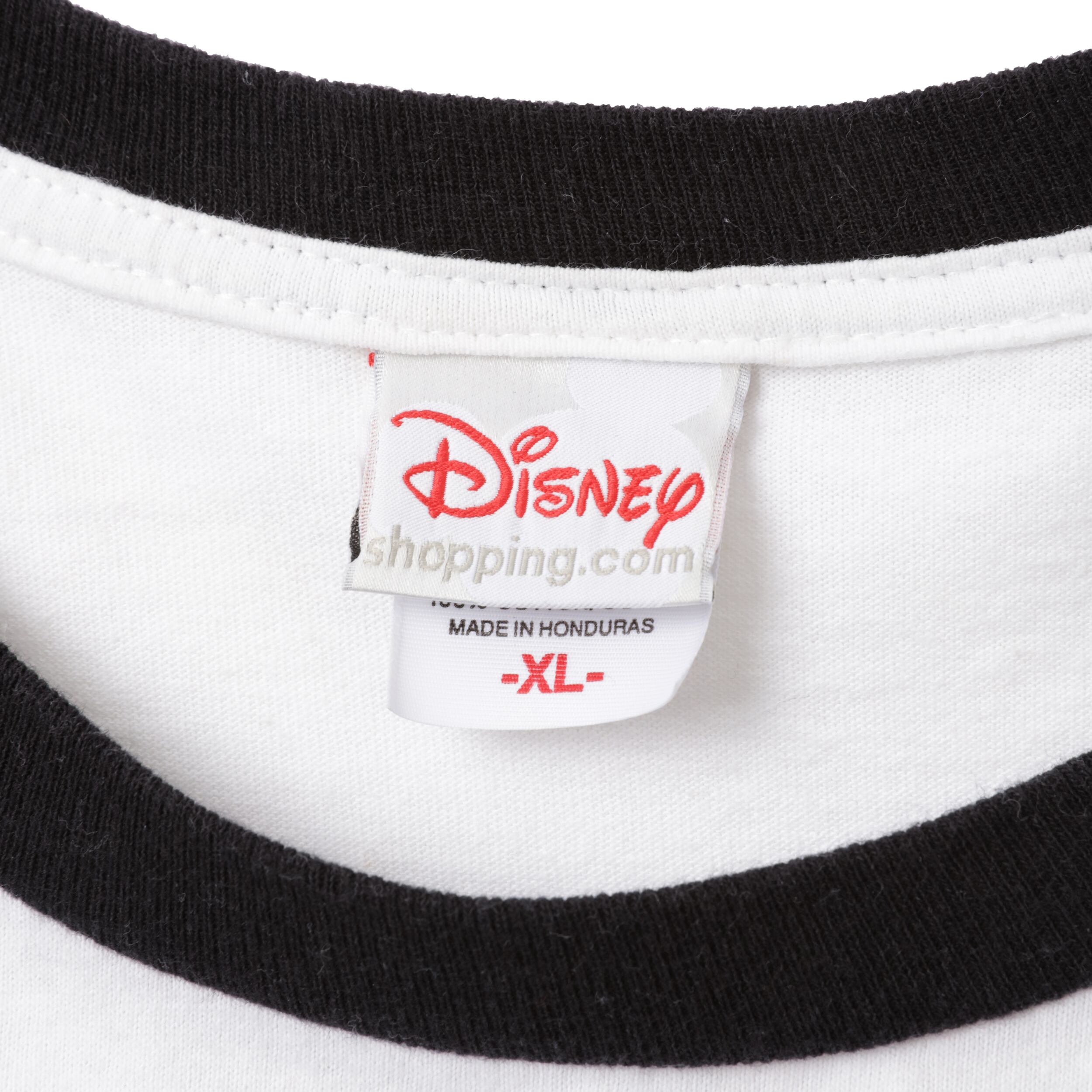 7人のこびとの顔がずらりと描かれたリンガーTシャツ。ディズニーの公式オンラインサイトである"Disney shopping"のタグがつく。パークで販売されたものや、プロモーション用のものに留まらず、オンラインものまであるとなると、ディズニーTのカテゴリは掘っても掘っても終わりがくることはなさそう。