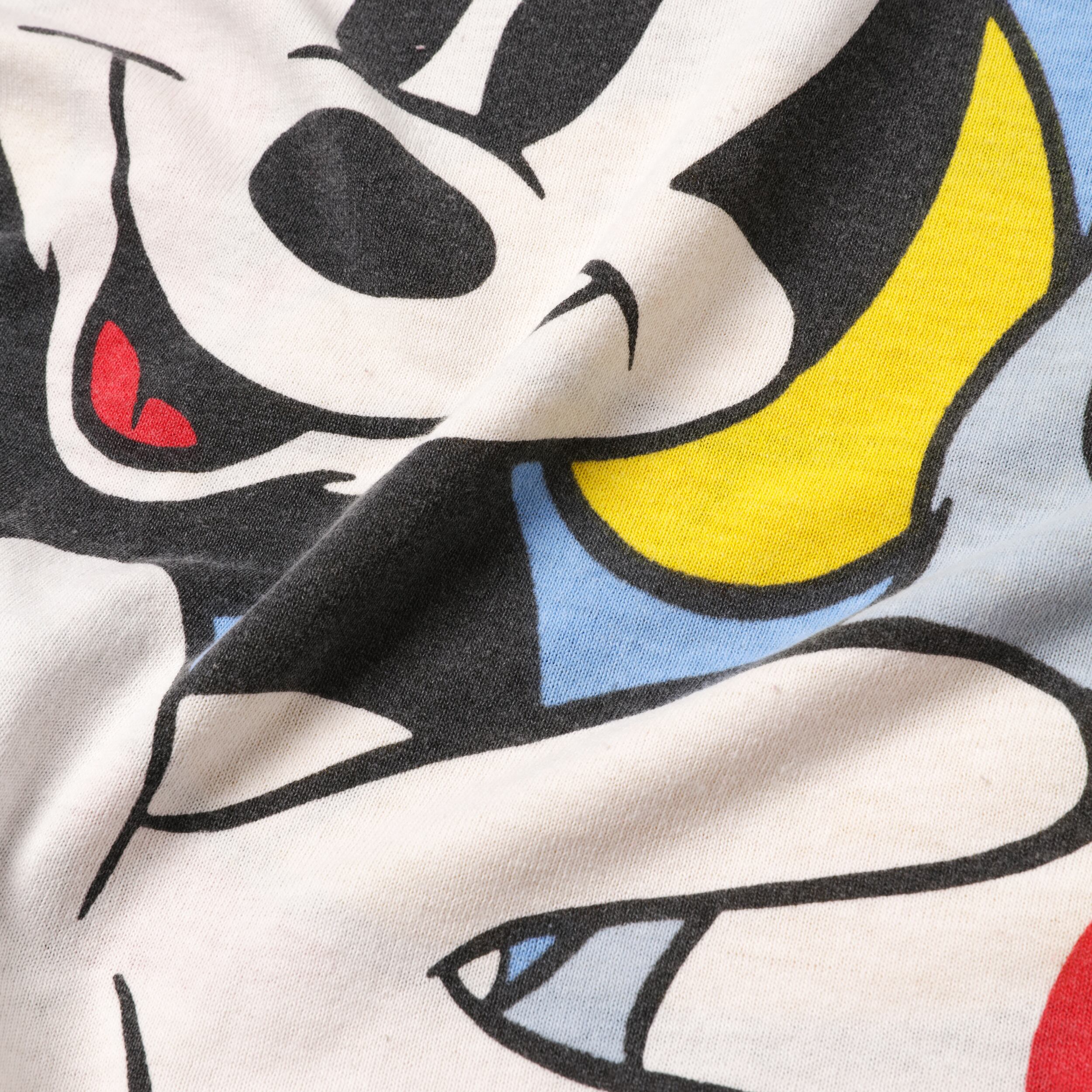 生地が薄めでテロッと着用できるビッグシルエットのド派手なやつです。ミッキーも裏から突き抜けてきちゃってます。こういう派手なデザイン見るといつも思うのが「きっと企画会議みたいなのを通して商品化されてるんだよな、これも…」と。売るってこと考えたら、このカラーリングってなかなか難しそうだし、部門長はよくぞOKを出したなと。そういう背景まで勝手に想像してコレクトしております。